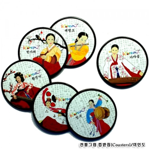 전통그림 컵받침/우원 풍속화(신형_원형)
