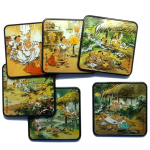 전통그림 컵받침/우원 풍속화(4각)