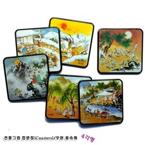 전통그림 컵받침/우원 풍속화(신형_4각)