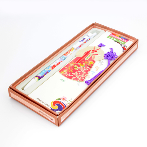 볼펜/책갈피세트-여자 꽃한복(치마/빨간색)