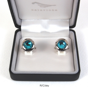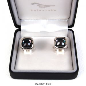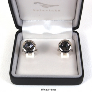 전통문양 커프스/크리스탈 커프스/원형 - 네이비