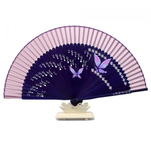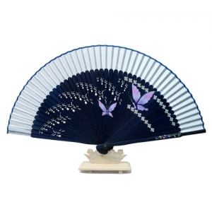 수공예 그림 실크부채/타공 나비부채-23-회청색
