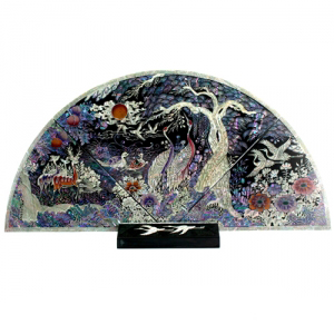 문화재 재현/자개 십장생 부채 3폭병풍(흑)-대
