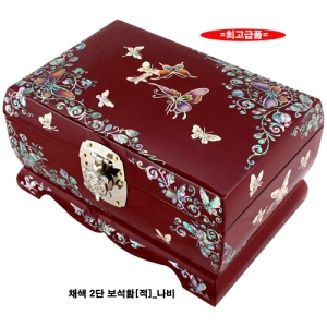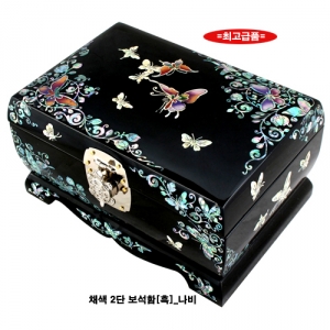 궁중자개 2단 보석함(대)/목단송학(흑)