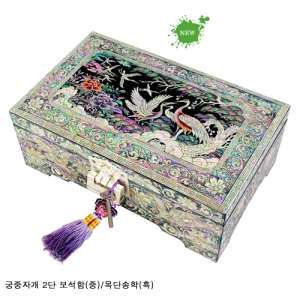 궁중자개 2단 보석함(중)/목단송학(흑)