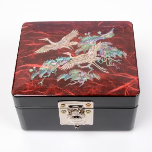 나전칠기 자개 한지 직보석함(소) -적색 송학