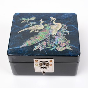 나전칠기 자개 한지 직보석함(소) -청색 공작