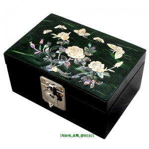 나전칠기 자개 한지 직보석함(소) - 초록색 장미