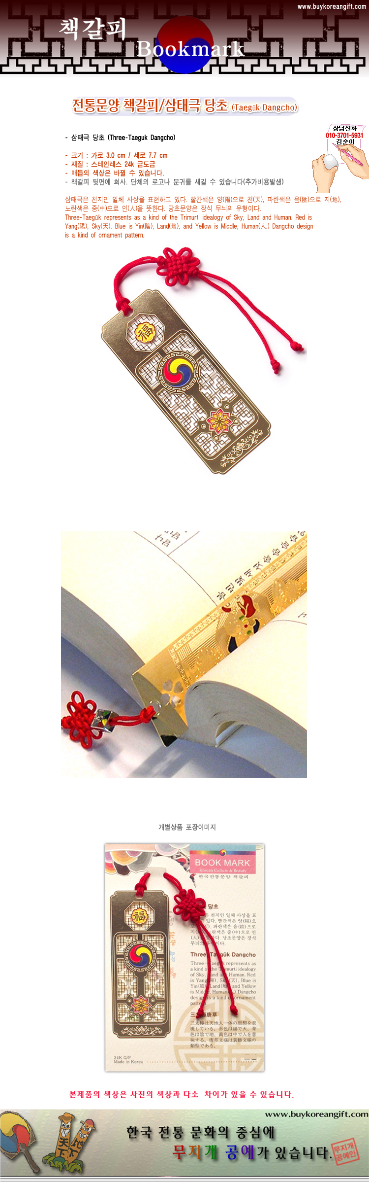 제품 요약 정보 전통문양을 소재로 만든 예쁘고 고급스런 책갈피