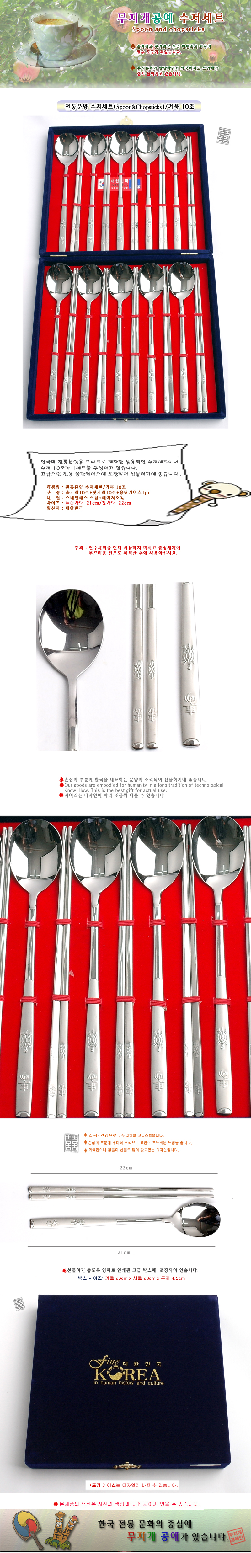 제품 요약 정보 전통문양이 새겨진 수저세트로 실용적이며 외국인 및 집들이선물에 좋습니다.