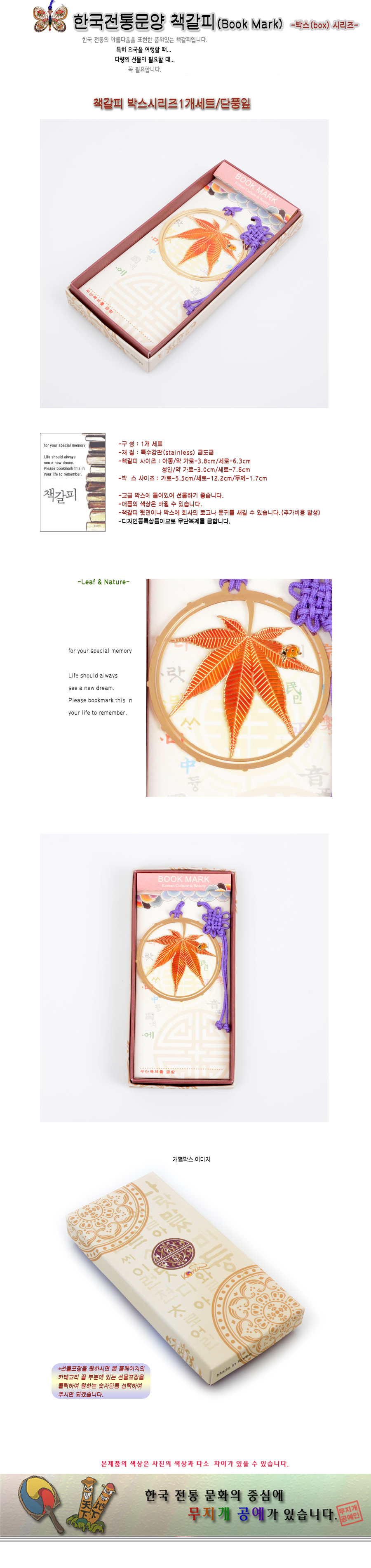제품 요약 정보 전통문양을 이용하여 한국의 아름다움을 표현한 책갈피