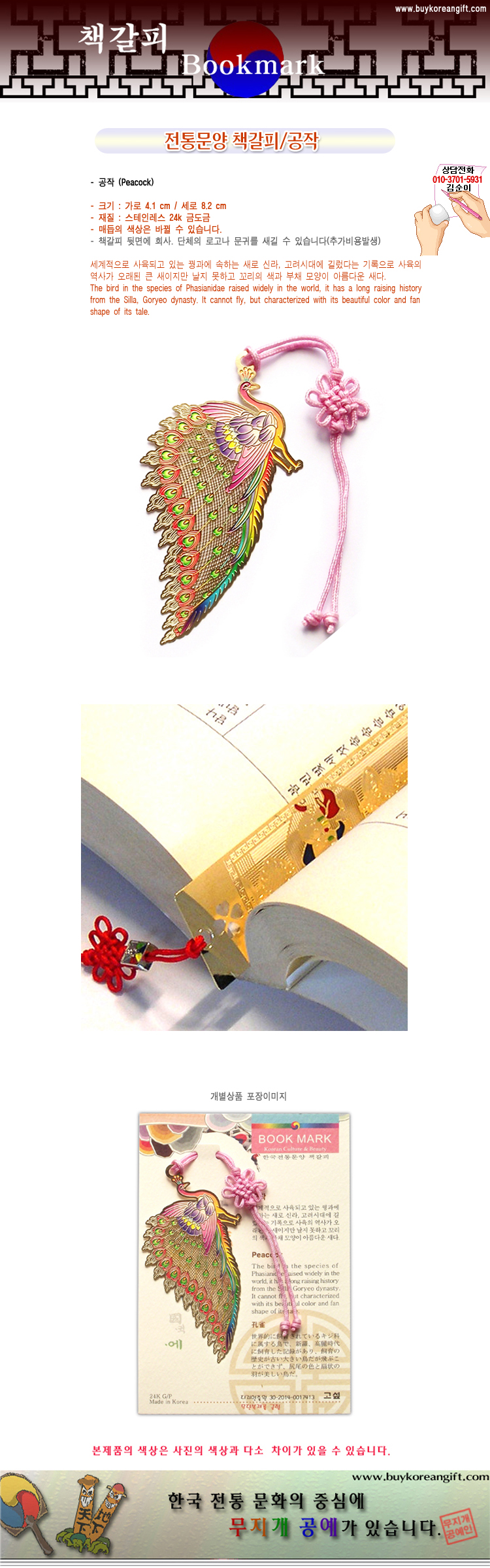 제품 요약 정보 전통문양을 소재로 만든 예쁘고 고급스런 책갈피