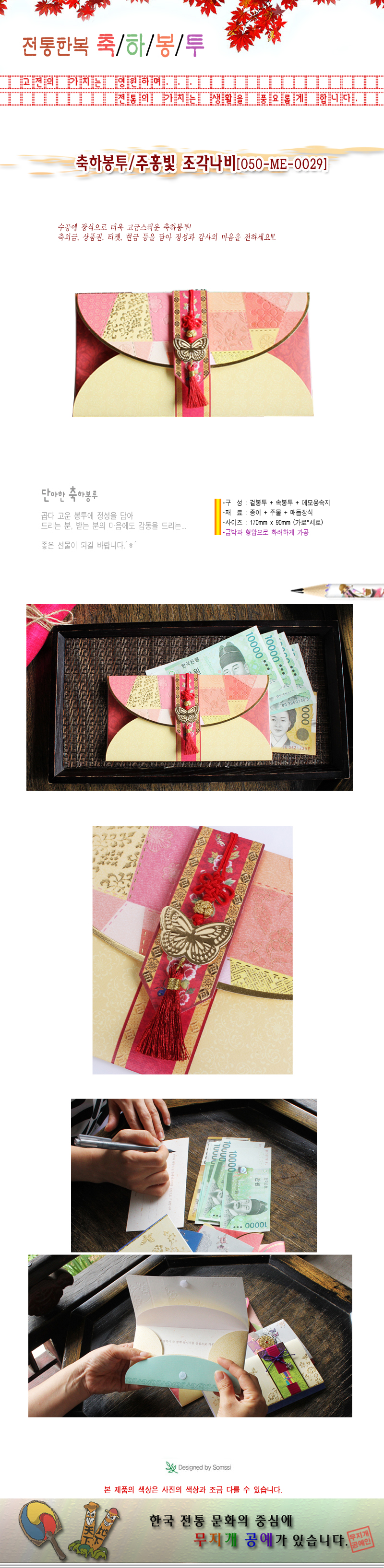 전통문양 축하봉투/주홍빛 조각나비(035-ME-0029)