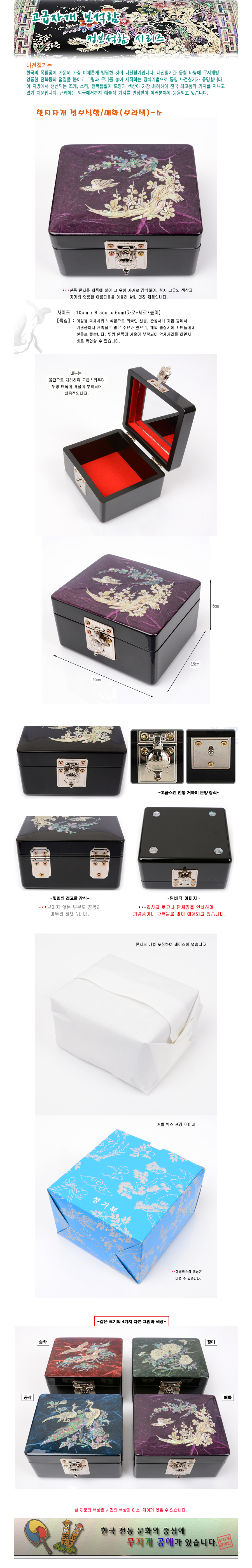 제품 요약 정보 영롱한 자개의 색상을 구현한 실용적인 정사각형의 보석함