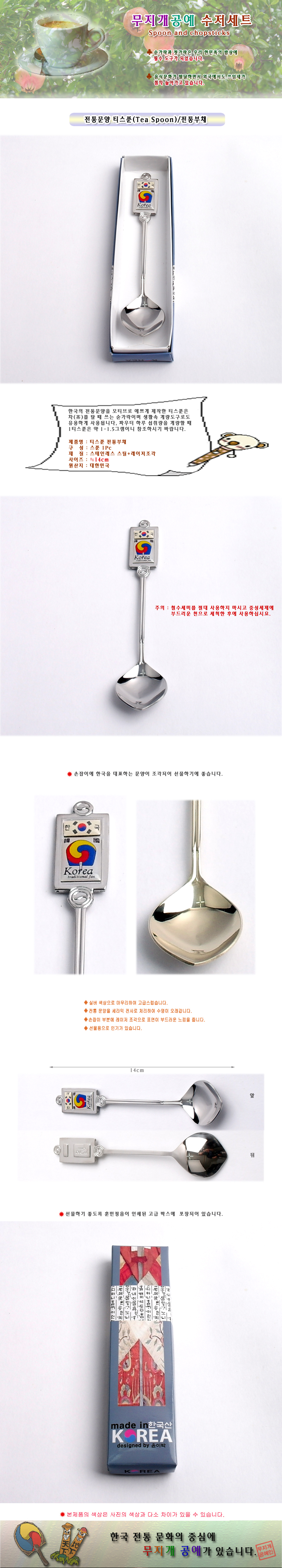 제품 요약 정보 한국의 전통문양을 모티브로 제작한 티스푼/차(茶)를 탈때 쓰는 숟가락