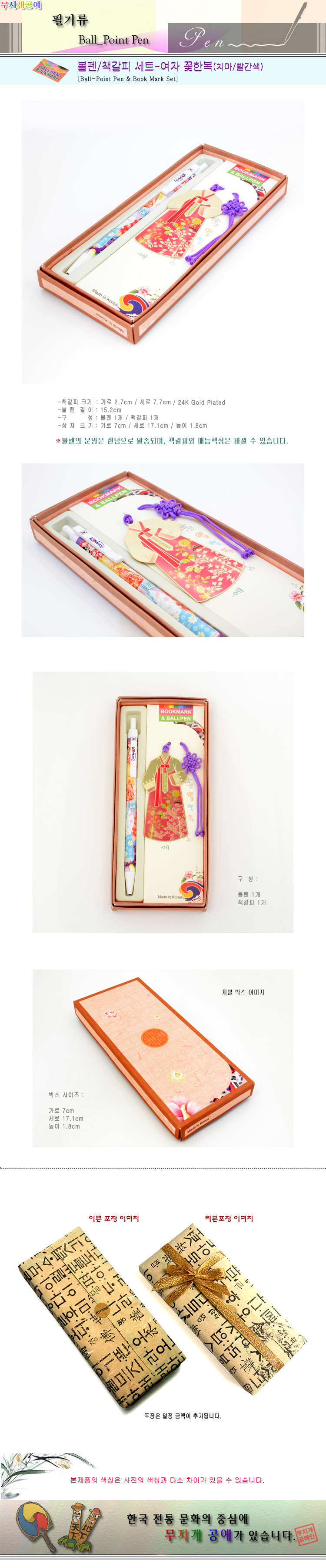 볼펜/책갈피세트-여자 꽃한복(치마/빨간색)