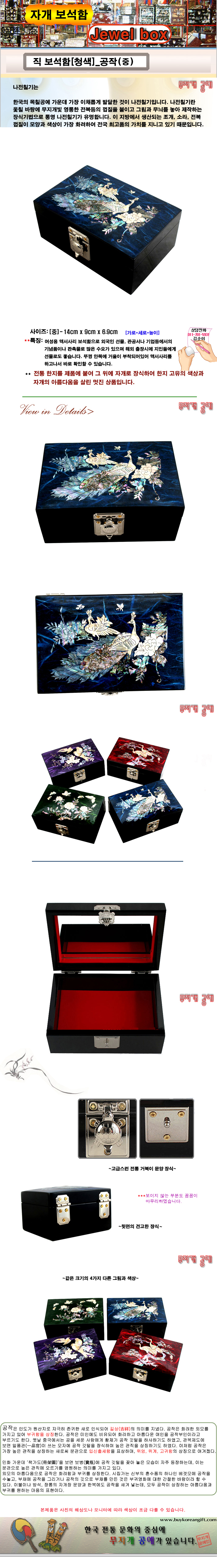 나전칠기 자개 한지 직보석함(중) -청색 공작
