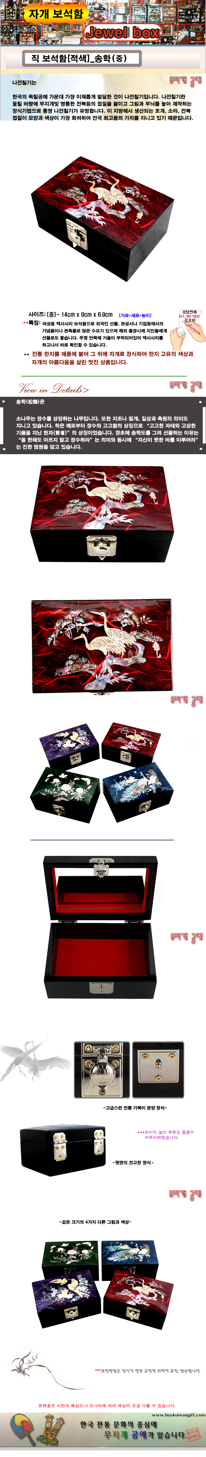 나전칠기 자개 한지 직보석함(중) - 적색 송학