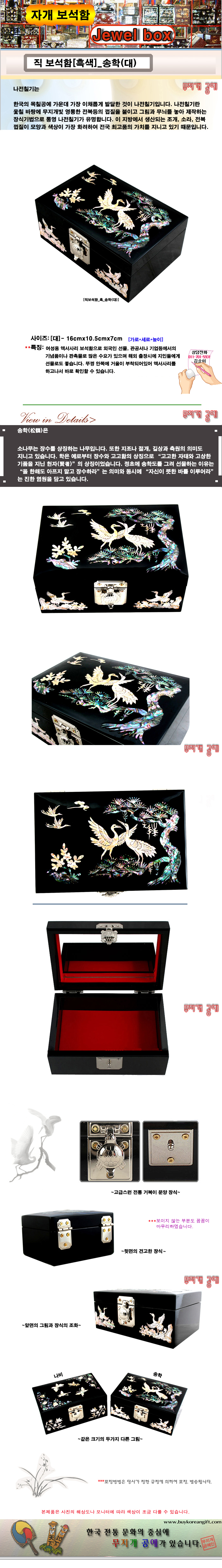 나전칠기 자개 직보석함(대) - 흑색 송학