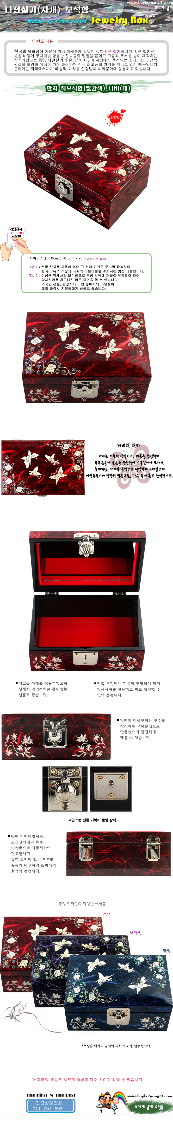 나전칠기 자개 한지 직보석함(대)-적색 나비