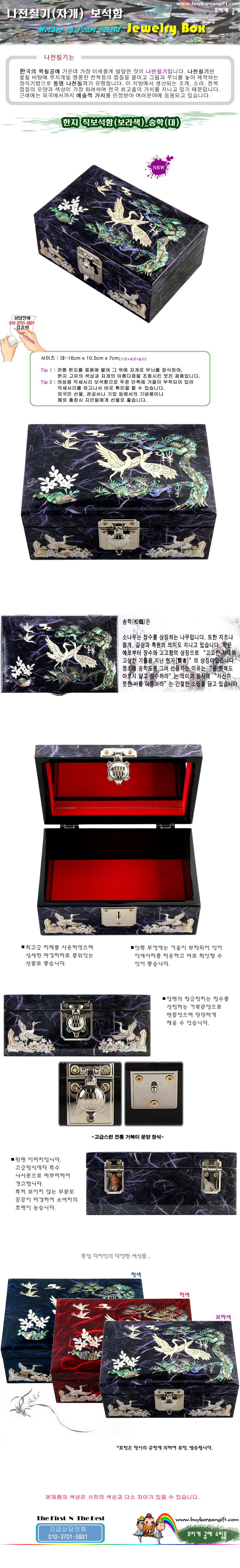 나전칠기 자개 한지 직보석함(대)-보라색 송학