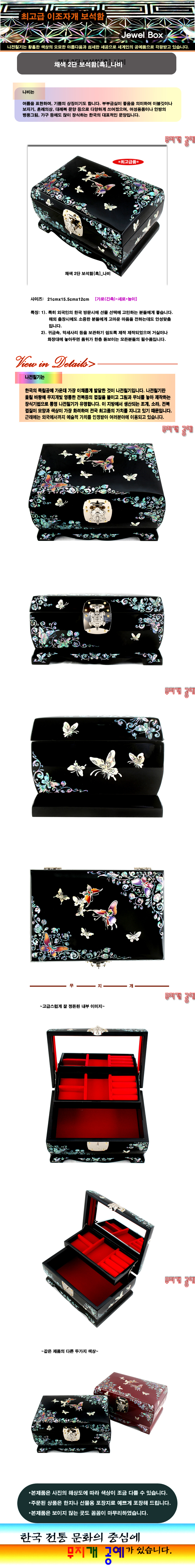 채색 2단 자개 보석함[흑] - 나비