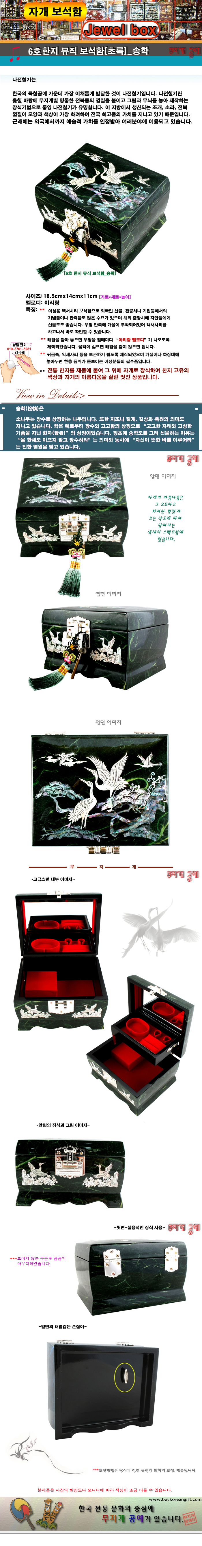 6호 한지 뮤직 자개 보석함[초록색] - 송학