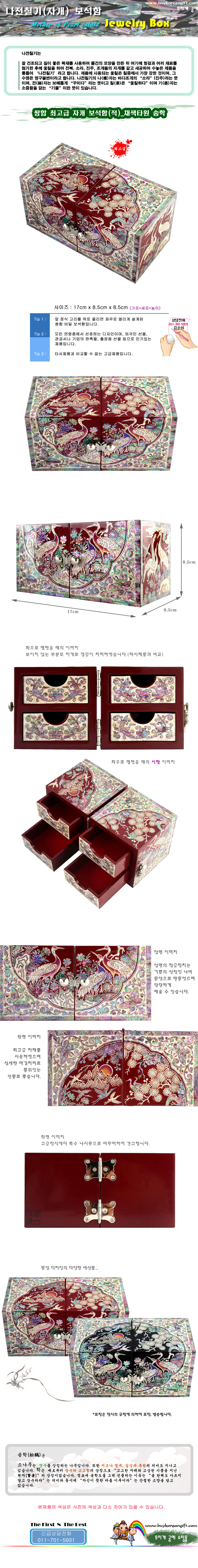 쌍합 최고급 자개 보석함(적)-채색타원 송학
