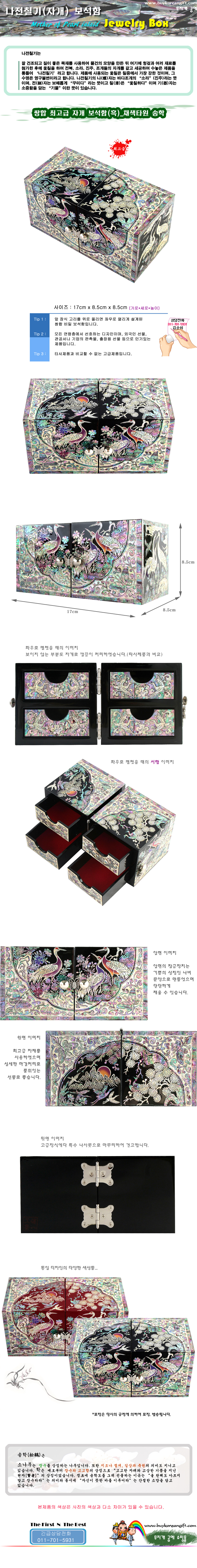 쌍합 최고급 자개 보석함(흑)-채색타원 송학