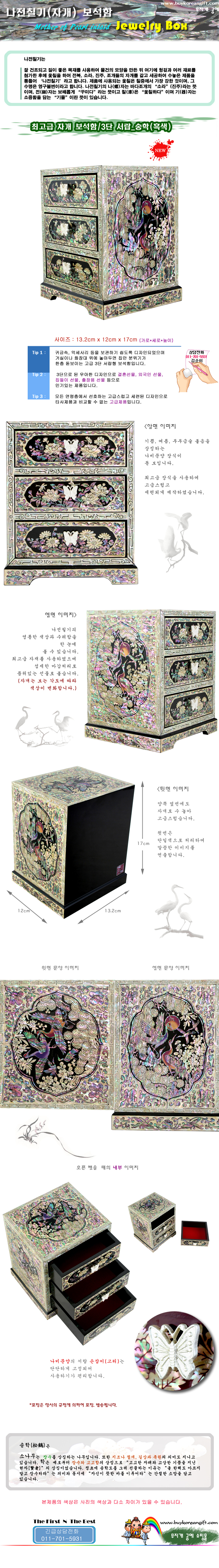 최고급 자개 보석함/3단 서랍_송학(흑)