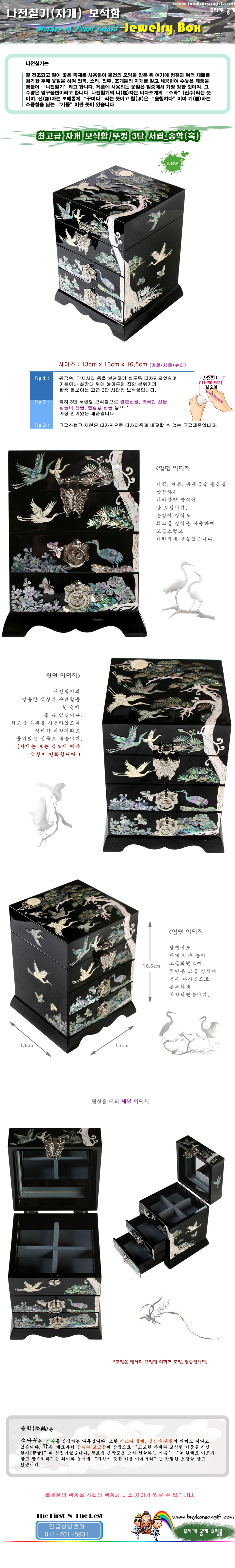 자개 보석함(유광)/뚜껑 3단 서랍_송학(흑)