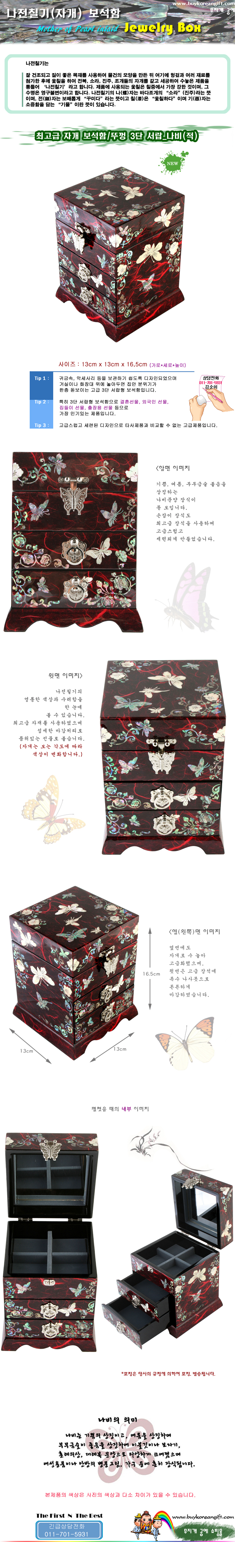자개 보석함(유광)/뚜껑 3단 서랍_나비(적)