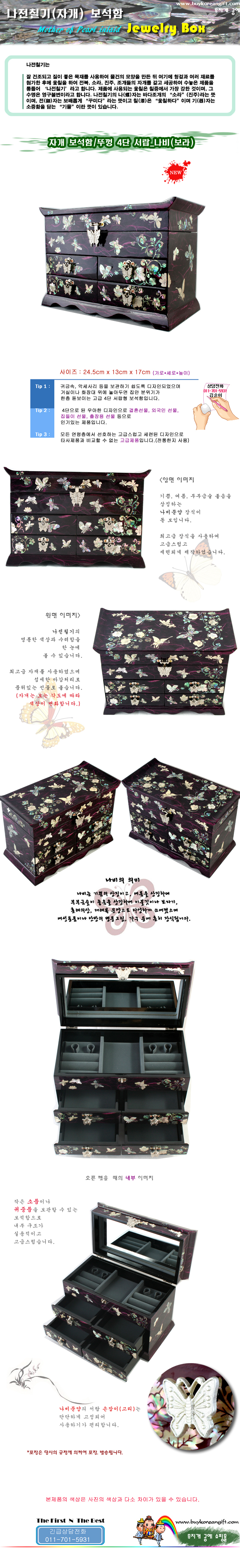 자개 보석함/뚜껑 4단 서랍(한)_나비(보라)