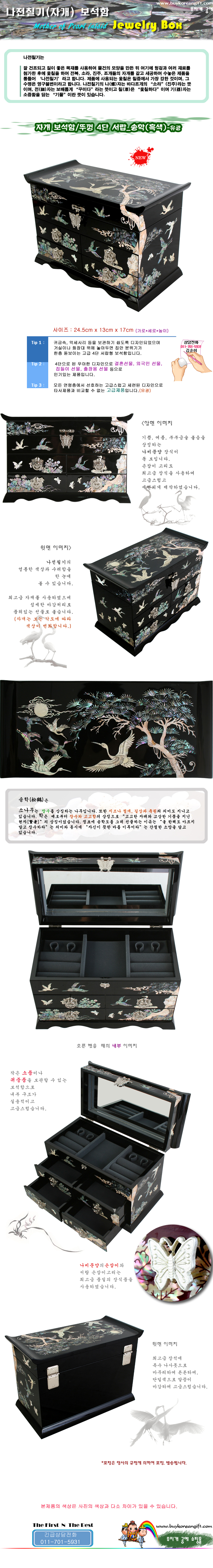 자개 보석함/뚜껑 4단 서랍(유)_송학(흑)