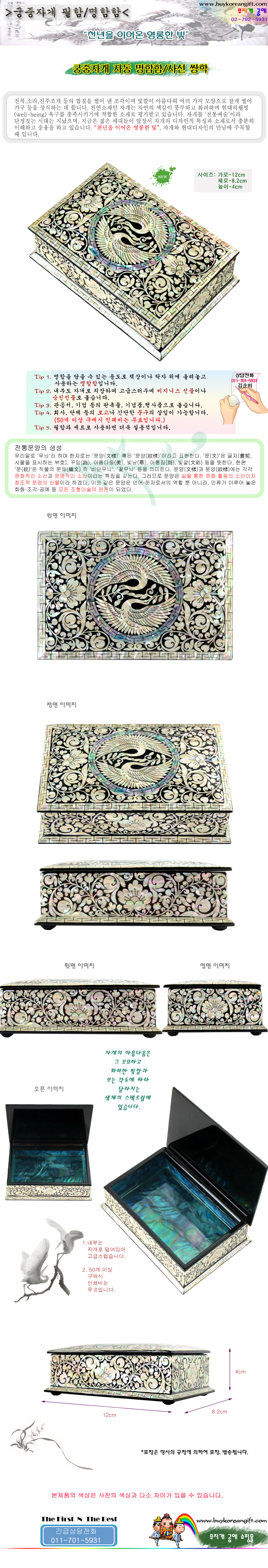 궁중 자개 명함함_사선 쌍학