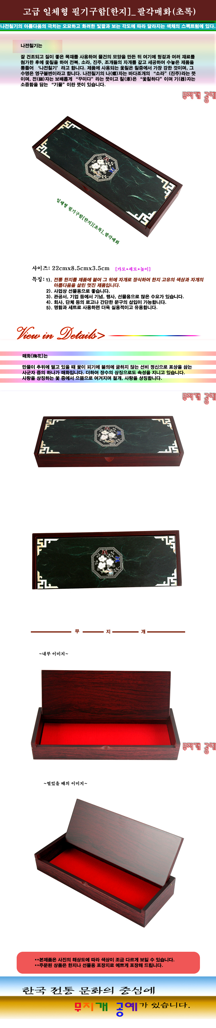 자개-고급 일체형 필기구함[한지]-팔각매화(초록)