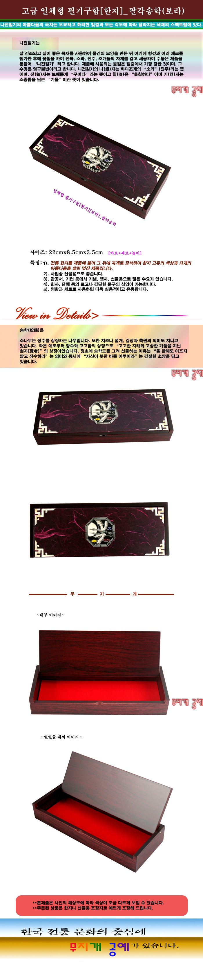 자개-고급 일체형 필기구함[한지]-팔각송학(보라)