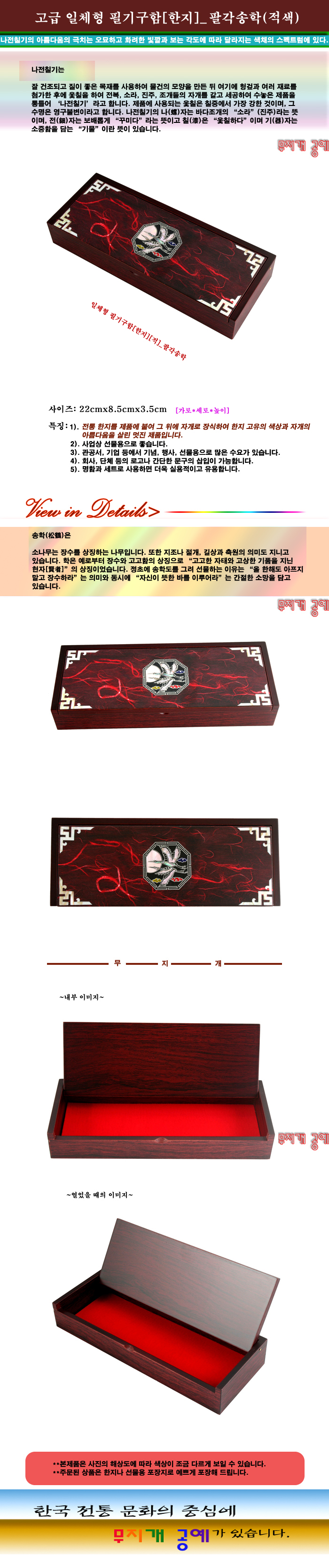 자개-고급 일체형 필기구함[한지]-팔각송학(적색)