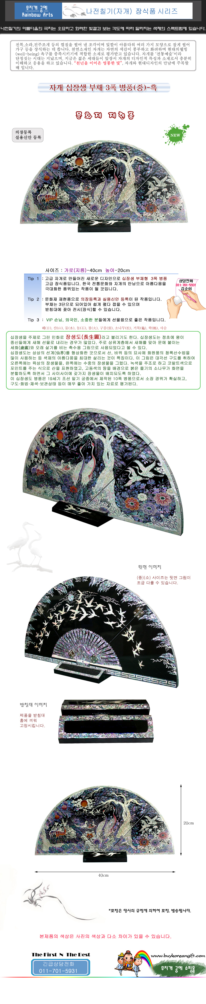 문화재 재현/자개 십장생 부채 3폭병풍(흑)-중