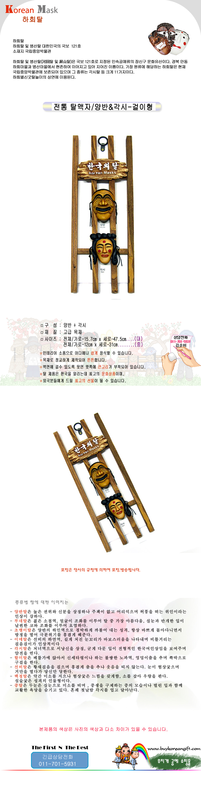 전통 탈액자/양반&각시탈-걸이형