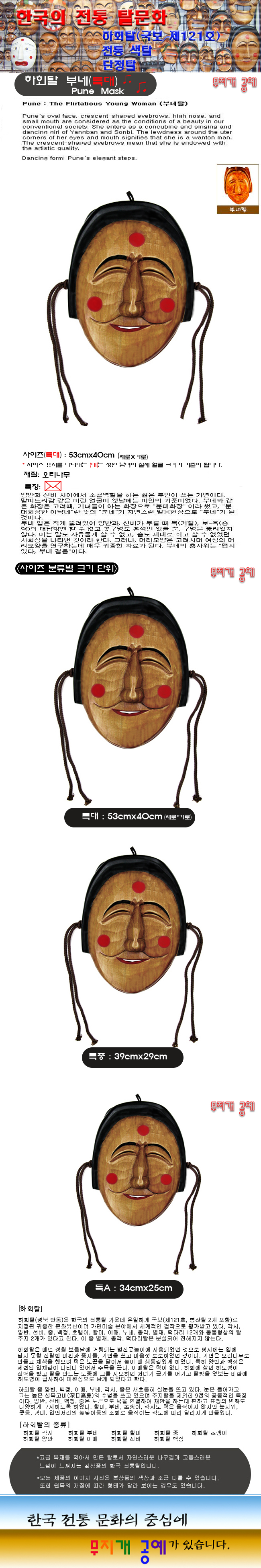 목공예 전통탈/하회탈 부네(특대)