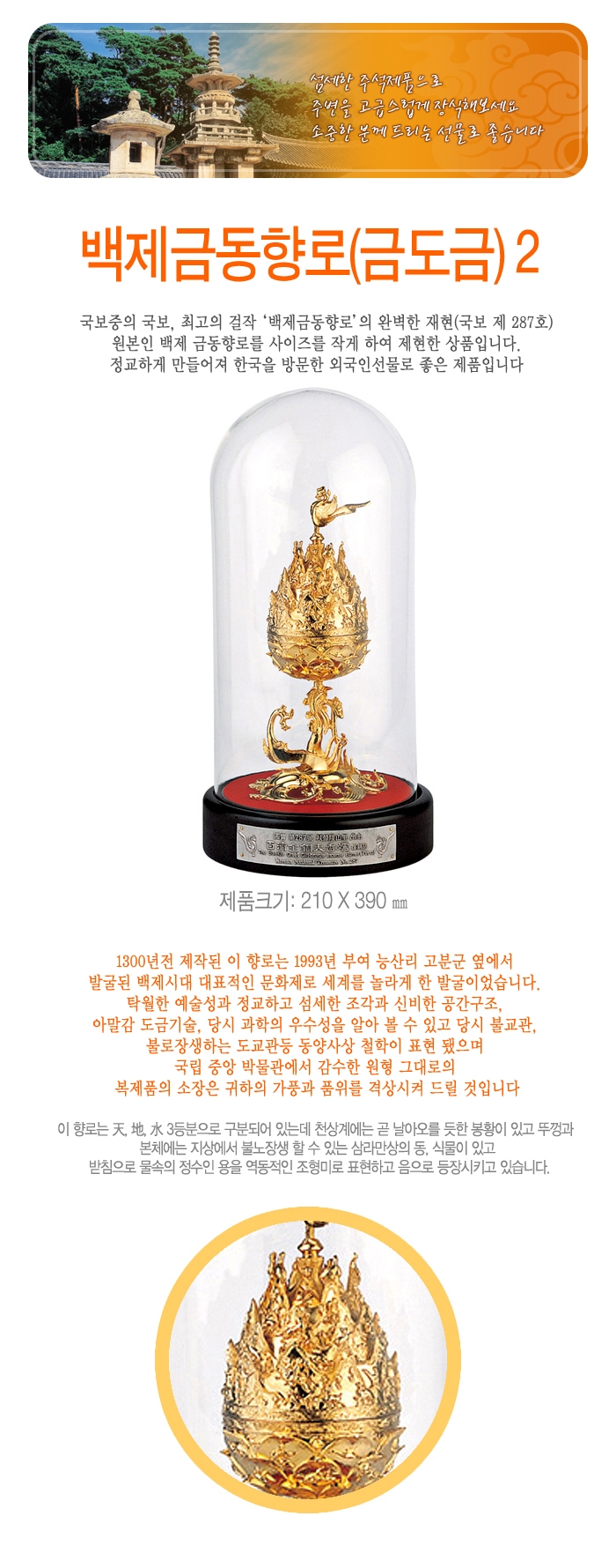 키워드 향로 백제금동향로 금도금 국보제287호 최고걸작 외국인선물 부여능산리 국립중앙박물관