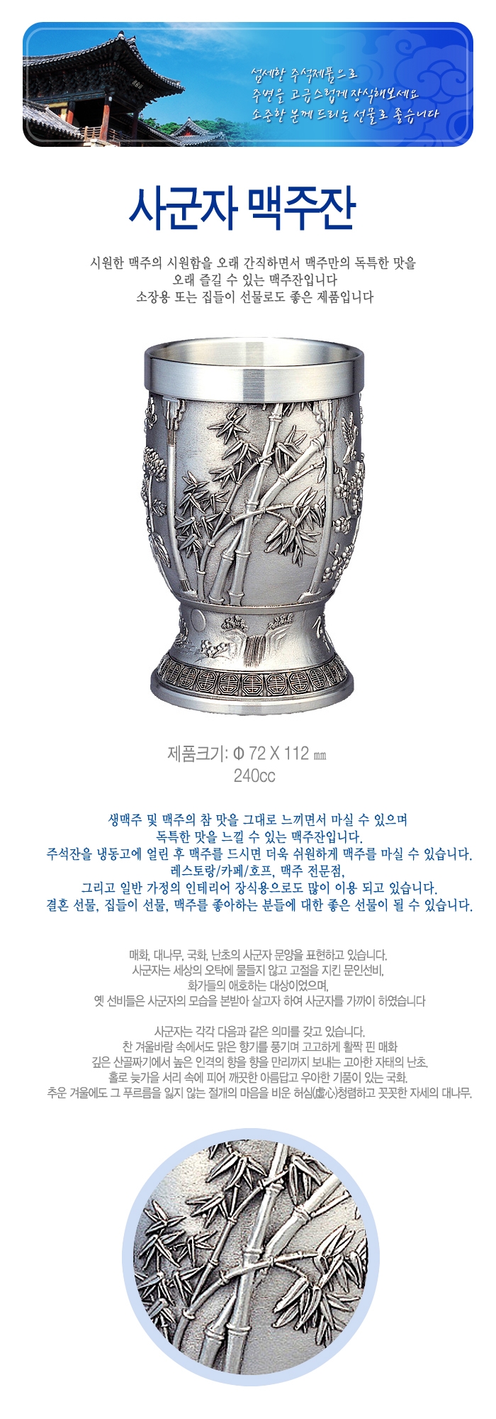 주석 맥주컵(사군자)B302SG