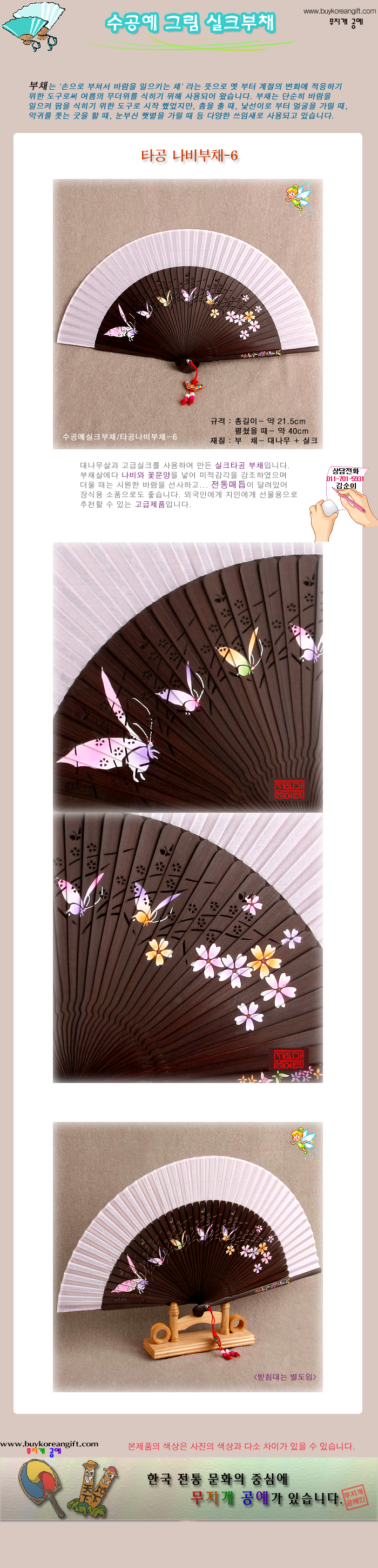 수공예 그림 실크부채/타공 나비부채-6