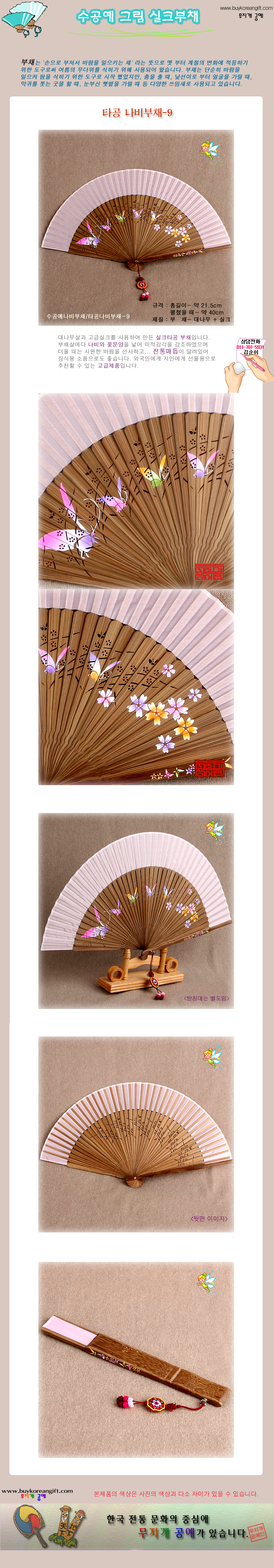수공예 그림 실크부채/타공 나비부채-9