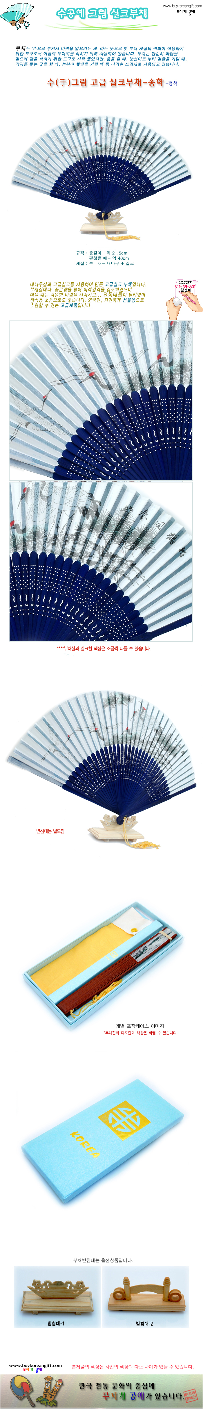 손그림 고급 실크부채-송학-청색