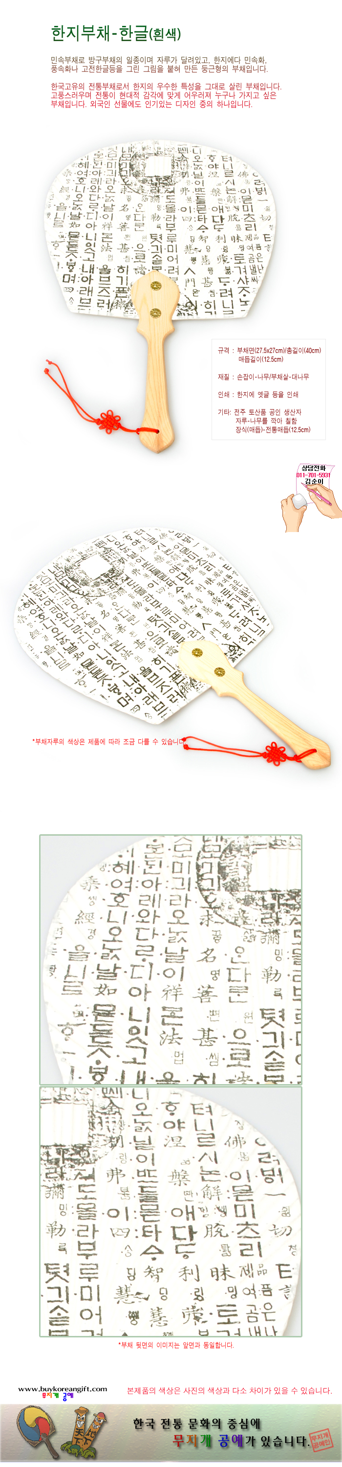 방구/한지부채-한글(흰색)