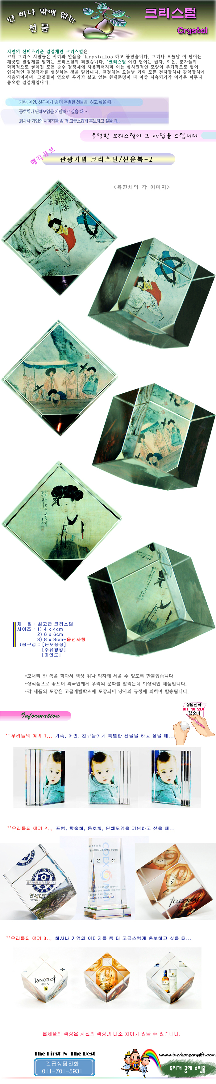 제품 요약 정보 크리스털에 전통 민화그림을 넣은 장식.선물용