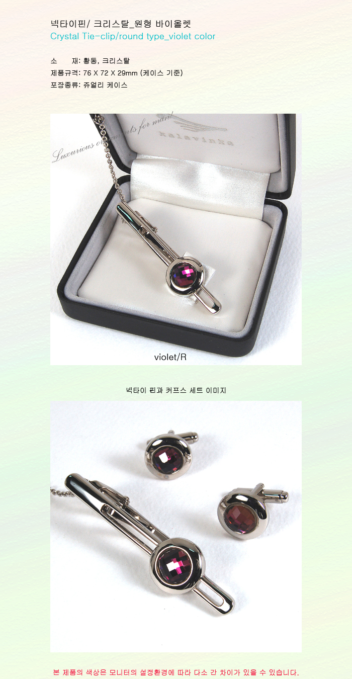 전통문양 넥타이핀/크리스탈 핀/원형 - 바이올렛