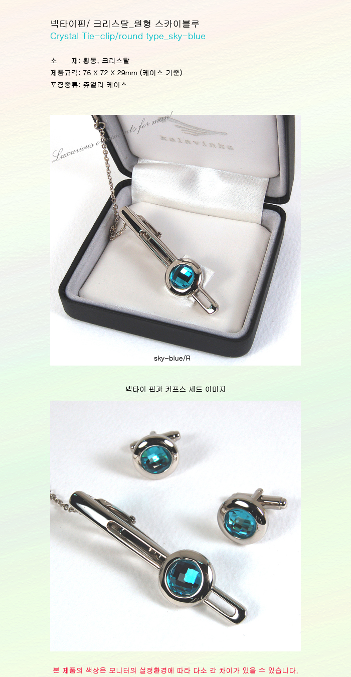 전통문양 넥타이핀/크리스탈 핀/원형 - 스카이 블루
